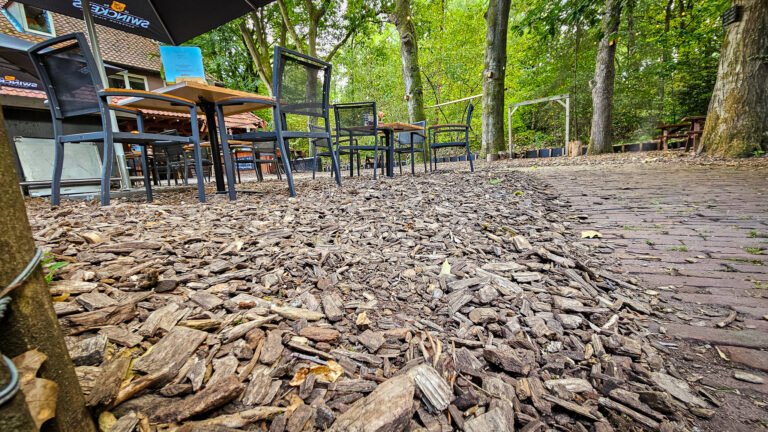 - Aanbrengen als mulchlaag van c.a. 10cm tegen onkruiden.