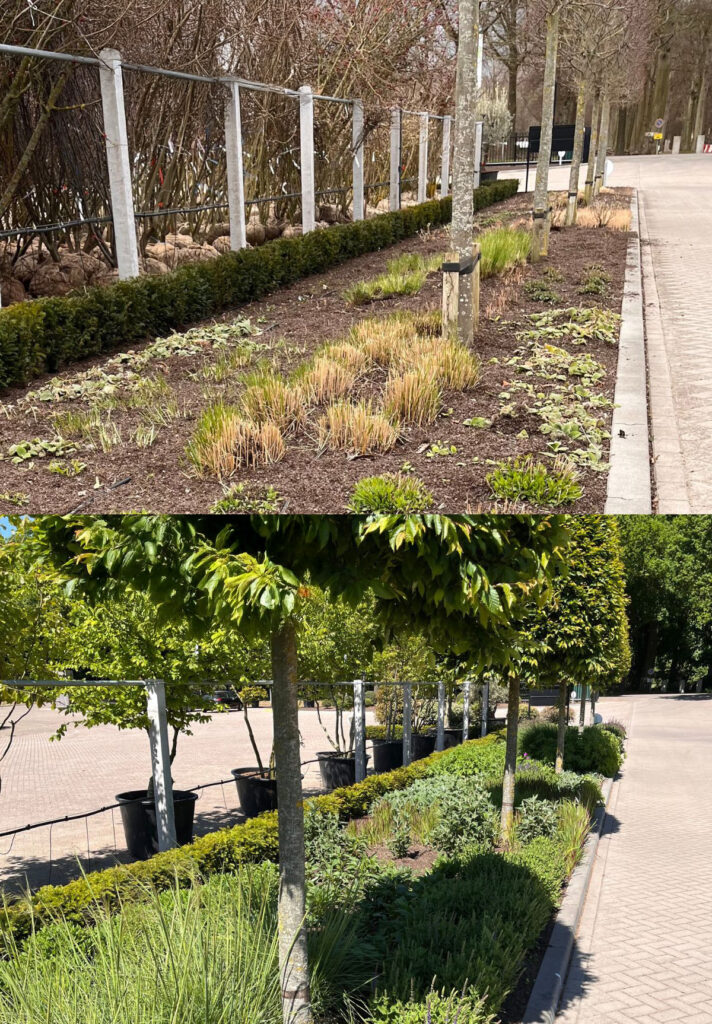 Bij Roestenburg Kwekerijen is Vigro Bosstrooisel aangebracht als mulchlaag – met direct zichtbaar resultaat.